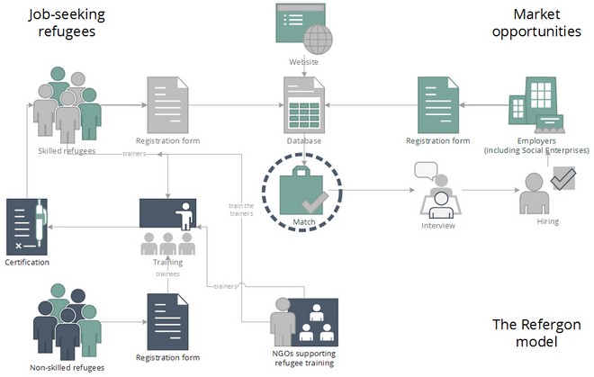 Πρόκειται για μια ICT πλατφόρμα η οποία συνδέει ειδικευμένους πρόσφυγες με εργοδότες και συνδέει ανειδίκευτους πρόσφυγες με ΜΚΟ και προγράμματα κατάρτισης . Επίσης, προσφέρει τη ευκαιρία σε πρόσφυγες να εκπαιδευτούν και να μάθουν από δομές που ήδη υπάρχουν, αλλά εξαιτίας της έλλειψης οργάνωσης, δεν τις γνωρίζουν.