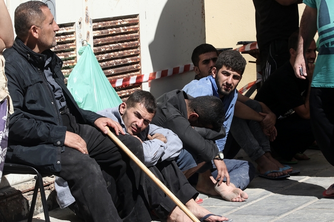 Φανερά εξουθενωμένοι αλλά και πεινασμένοι δέχονται τις πρώτες βοήθειες και την επιμέλεια τόσο των γιατρών του νοσοκομείου της μητρόπολης όσο και των ερυθροσταυριτών. Παράλληλα γίνεται και η καταγραφή τους όπως προβλέπεται.