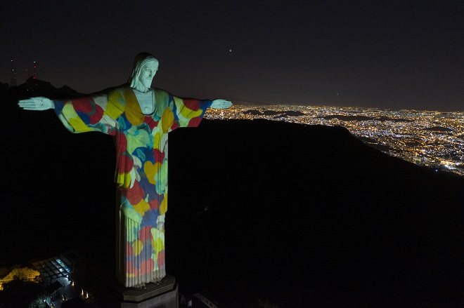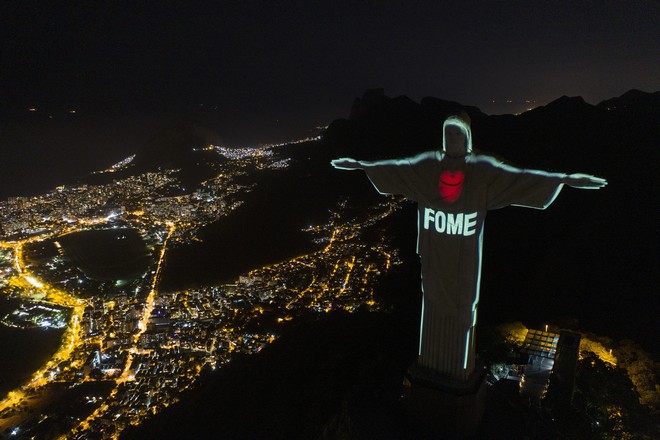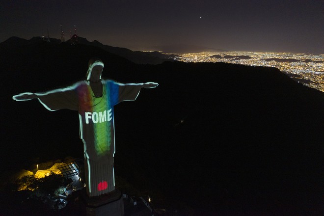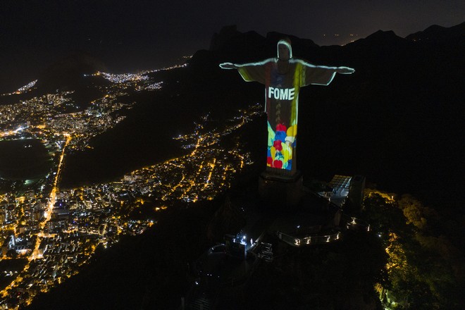 Εντυπωσιακές φωτογραφίες από το άγαλμα του Χριστού Σωτήρα στη Βραζιλία, που φωτίστηκε για καλό σκοπό με σύνθημα "τραπέζι χωρίς πείνα".