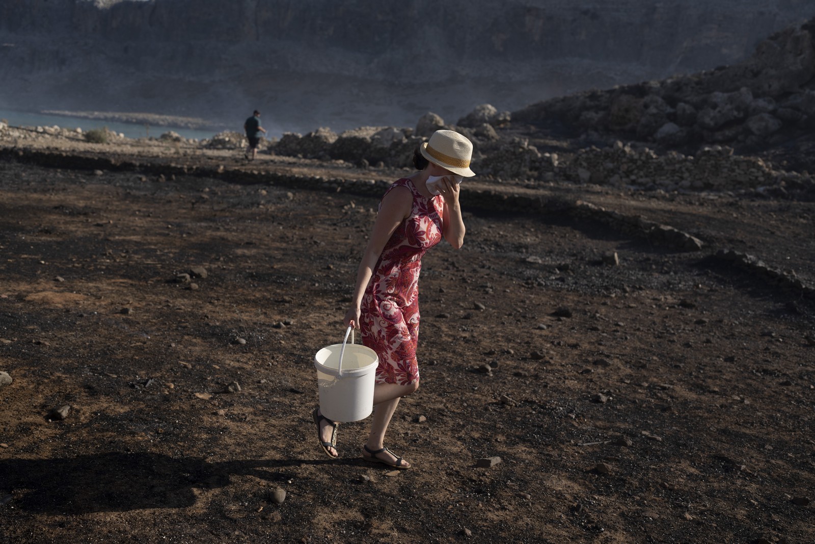 Τουρίστρια στη μάχη της κατάσβεσης της φωτιάς στη Ρόδο AP Photo/Petros Giannakouris