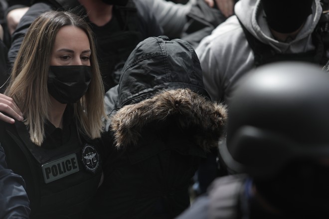 Η 33χρονη μεταφέρθηκε από την ΓΑΔΑ, φορώντας αλεξίσφαιρο γιλέκο και το ίδιο μπουφάν με την πρώτη φορά που βρέθηκε στην Ευελπίδων, η κουκούλα του οποίου έκρυβε το πρόσωπό της, ενώ οι αστυνομικοί που την συνόδευαν απώθησαν τον κόσμο που κινείτο απειλητικά προς το μέρος της, φωνάζοντας “θάνατος”.