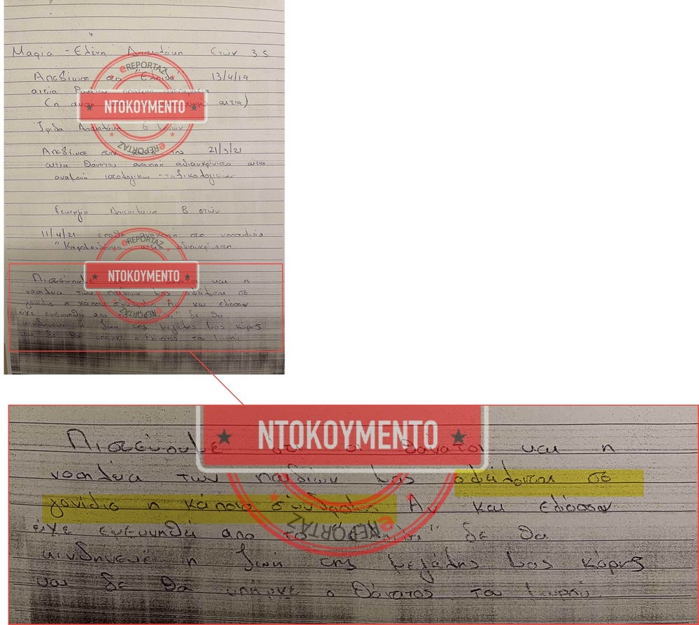 Τα χειρόγραφα έγγραφα της Ρούλας για το θάνατο των παιδιών της