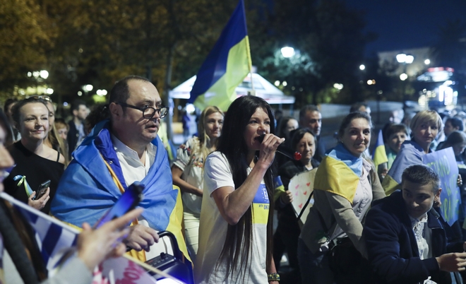 Επικεφαλής αντιπολεμικής συγκέντρωσης στο κέντρο της Αθήνας η Ρουσλάνα. Η δημοφιλής καλλιτέχνιδα τραγούδησε μαζί με τους συγκεντρωμένους.