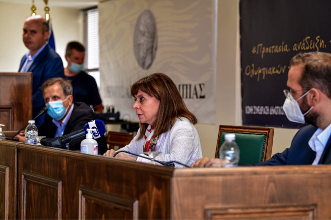 Η Πρόεδρος της Δημοκρατίας, Κατερίνα Σακελλαροπούλου, μίλησε για τις καταστροφές που προκάλεσε η πυρκαγιά στην Ηλεία, ενώ τόνισε πως είναι "χρέος της Πολιτείας να στηρίξει τους πολίτες στην Αρχαία Ολυμπία".