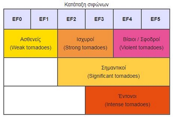 Στη χώρα μας έχουμε καταγράψει περίπου 30 ανεμοστρόβιλους που μπορούν να ικανοποιήσουν τα κριτήρια των κατηγοριών EF2 – EF3 από το 1843 μέχρι σήμερα και εμφανίζονται κυρίως στη Δυτική Ελλάδα,. Συνολικά γνωρίζουμε ότι έχουν χάσει τη ζωή τους 29 άτομα (με τους εργάτες στη λίμνη Πλαστήρα) και 154 έχουν τραυματιστεί στη χώρα μας από ανεμοστρόβιλους τα τελευταία 150 χρόνια.