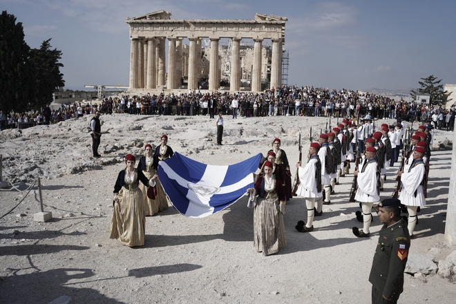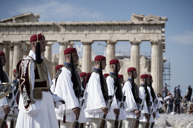Την αυτή εκείνη, τίμησε το πρωί της Τρίτης, άγημα των Ενόπλων Δυνάμεων που έκανε την έπαρση της ελληνικής σημαίας, στον Ιερό Βράχο της Ακρόπολης.