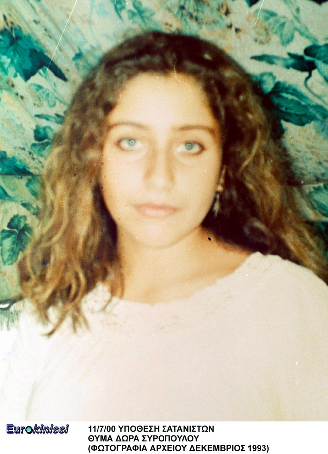 Η “σατανική τριάδα” διέπραξε το πρώτο της έγκλημα στις 27 Αυγούστου 1992. Με το πρόσχημα της λευκής μαγείας οι τρεις τους οδήγησαν την 14χρονη Θεοδώρα Συροπούλου στη θέση Σέσι στο Κορωπί. Την έγδυσαν, της φόρεσαν χειροπέδες, την έβαλαν να γονατίσει κρατώντας ένα κερί και τη χτύπησαν με ένα ξύλο στο κεφάλι. Όταν διαπίστωσαν ότι η ανήλικη δεν είχε πεθάνει, τη στραγγάλισαν και μετά ασέλγησαν στο άψυχο κορμί της. Στη συνέχεια περιέλουσαν το πτώμα της με βενζίνη και το έκαψαν. Προκάλεσαν μάλιστα και πυρκαγιά στο δάσος του Υμηττού.