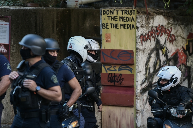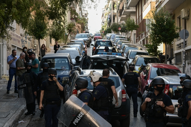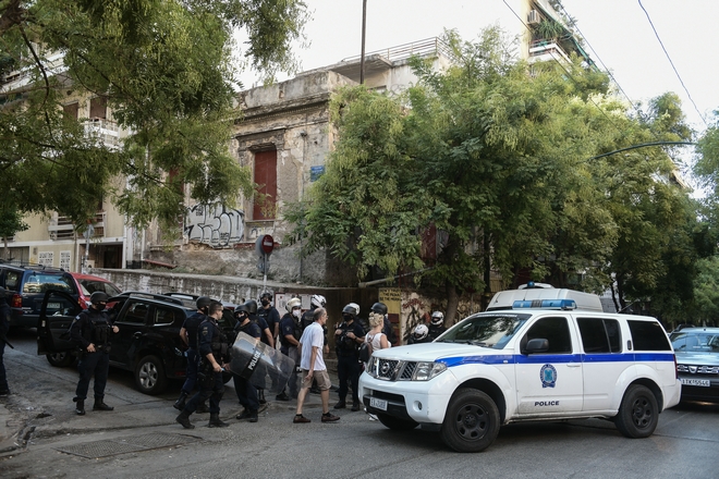 Αστυνομική επιχείρηση για την εκκένωση κατάληψης στην οδό Φιλολάου 99 στο Παγκράτι.