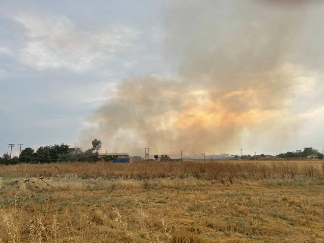 Σε εξέλιξη φωτιά που ξέσπασε σε μπάλες με άχυρα στην παλιά εθνική Λάρισας - Βόλου. Πυροσβεστικές δυνάμεις στο σημείο.