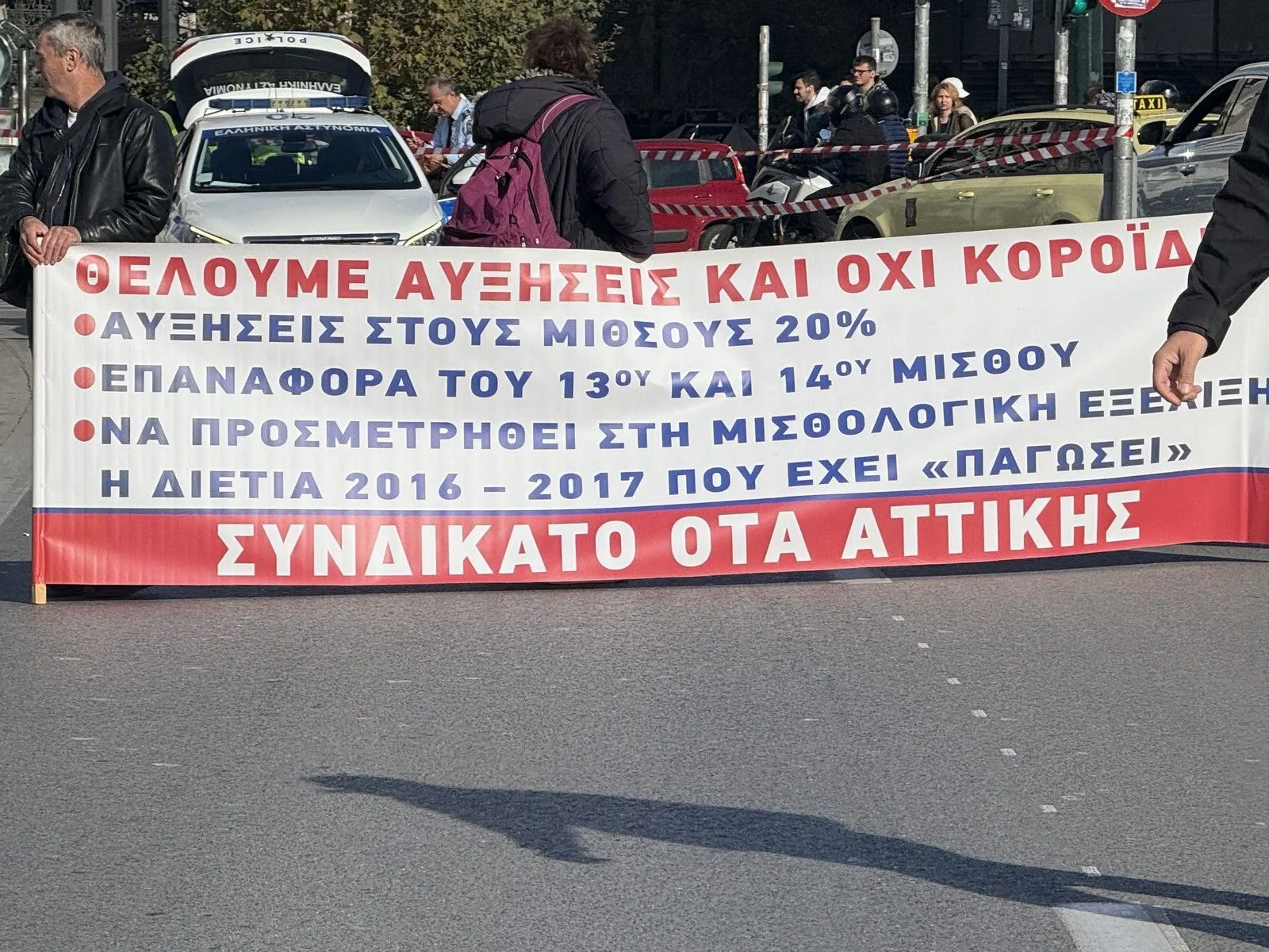 Στο Σύνταγμα βρέθηκαν και από την οδό Σταδίου σύλλογοι εκπαιδευτικών, σωματεία εργαζομένων στο Δημόσιο και συνταξιούχοι που είχαν συγκεντρωθεί νωρίτερα στην πλατεία Κλαυθμώνος.