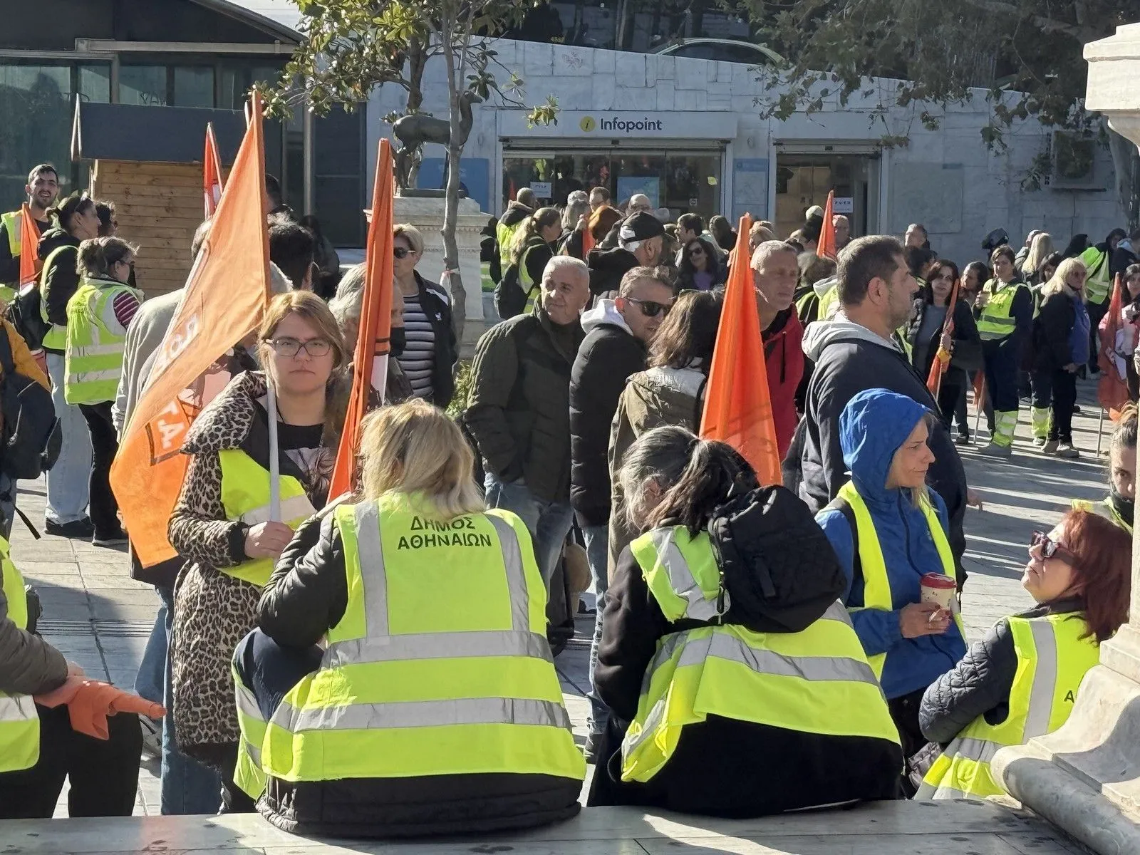 Οι συγκεντρώσεις στην πλατεία Συντάγματος ξεκίνησαν μετά τις 11:00, με εκατοντάδες εργαζόμενους του Δημοσίου και ειδικά της τοπικής αυτοδιοίκησης να δίνουν ηχηρό παρών.