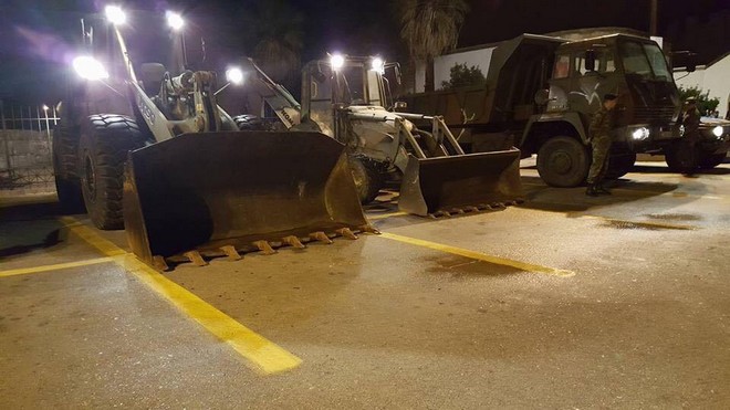 Ειδικότερα, έχουν μεταφερθεί στο νησί από την 95 ΑΔΤΕ της Ρόδου 1 εκσκαφέας τάφρων, 1 ανατρεπόμενο όχημα, 1 φορτωτής γαιών, 2 κινητά μαγειρεία, 2 ηλεκτροπαραγωγά ζεύγη μεγάλης ισχύος, 1 κινητός επικοινωνιακός κόμβος, 2 οχήματα τύπου «Καναδέζα» με εξοπλισμό/εργαλεία και το αντίστοιχο προσωπικό (4 αξιωματικοί και 15 οπλίτες).