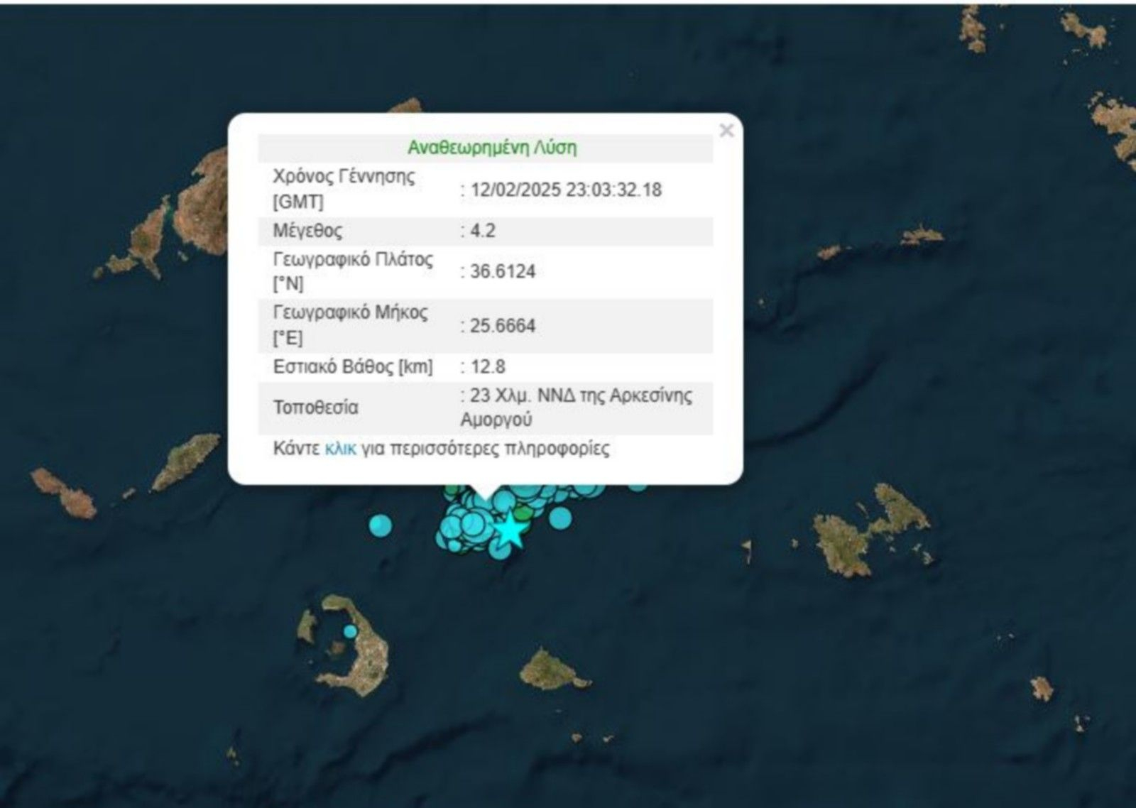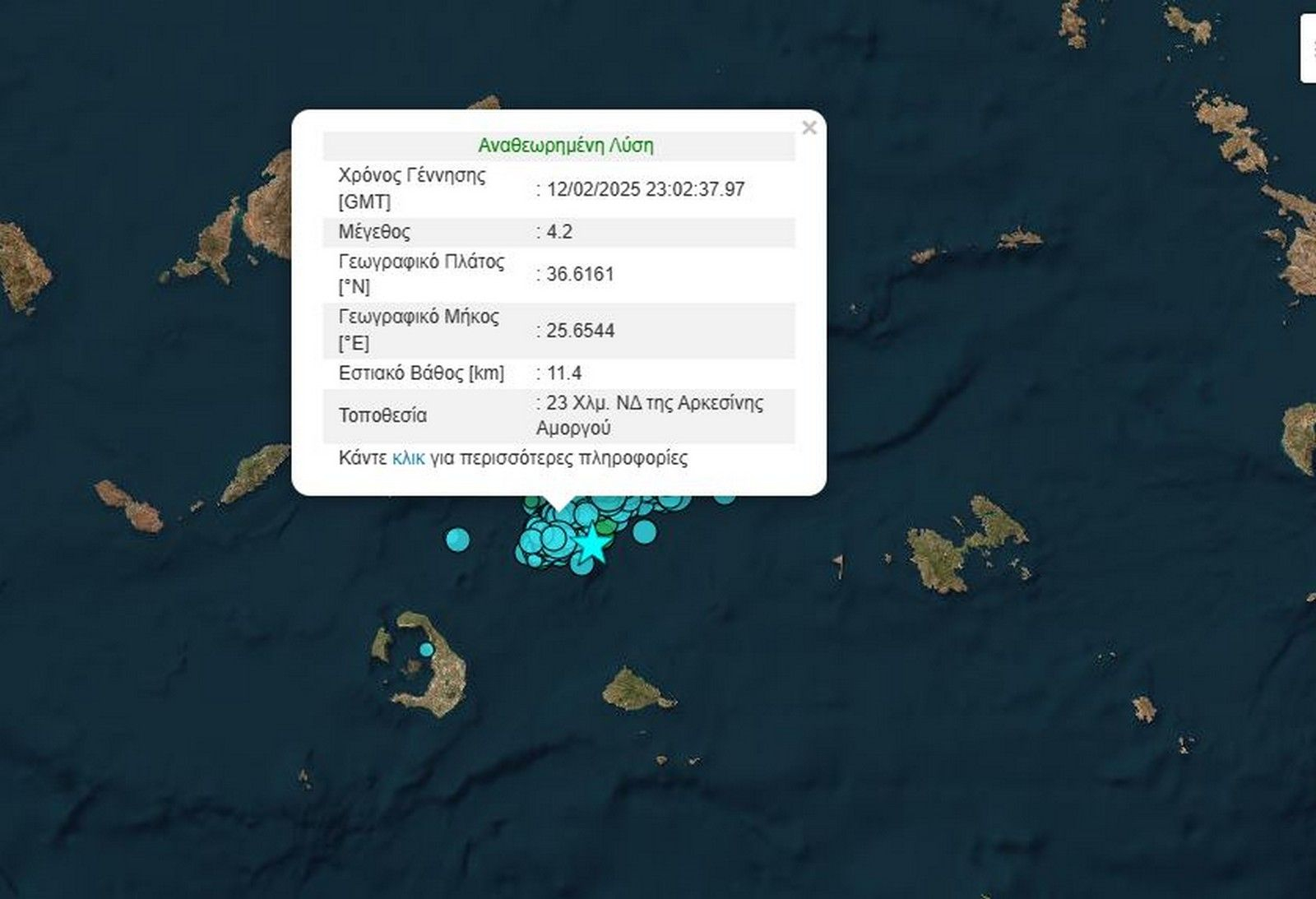 Σεισμοί: Διπλή δόνηση 4,2 Ρίχτερ μεταξύ Σαντορίνης και Αμοργού τη νύχτα