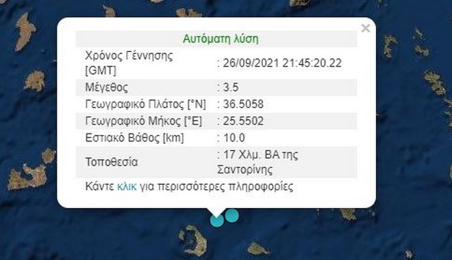 Σεισμός 3,5 Ρίχτερ στη Σαντορίνη