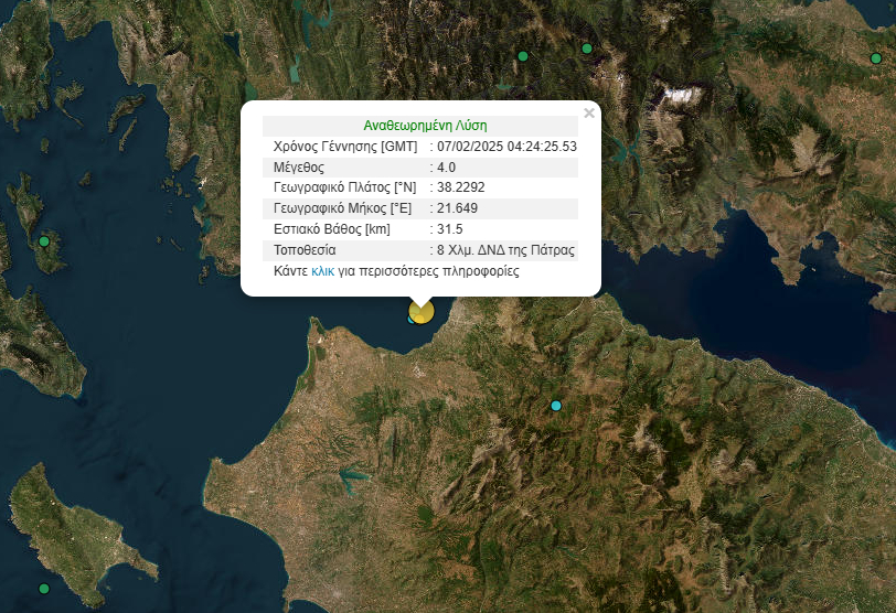 Σεισμός 4 Ρίχτερ σημειώθηκε στον Πατραϊκό κόλπο. Έγινε αισθητός σε Αχαΐα, Ηλεία και Αιτωλοακαρνανία.