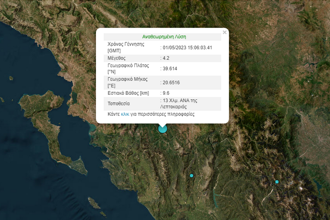 Συγκεκριμένα, σύμφωνα με το Γεωδυναμικό Ινστιτούτο Αθηνών, το επίκεντρο του σεισμού εκτιμάται 13 χλμ. νοτιοανατολικά της Λεπτοκαριάς, ενώ το εστιακό βάθος υπολογίζεται στα 9,6 χλμ.