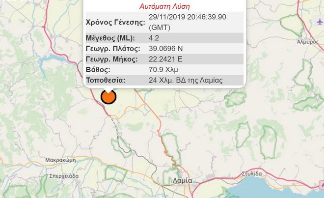 Σεισμός 4,2 Ρίχτερ ταρακούνησε την Λαμία