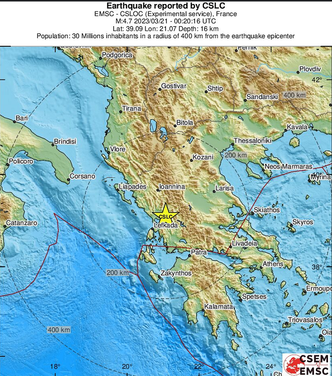 Η αυτόματη λύση του Ευρωπαϊκού – Μεσογειακού Σεισμολογικού Ινστιτούτου (EMSC) έκανε λόγο για σεισμό μεγέθους 4,7 Ρίχτερ.