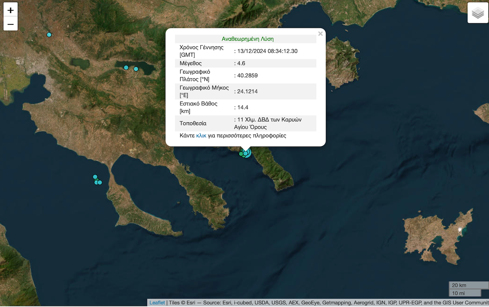 Ισχυρός σεισμός σημειώθηκε λίγο μετά τις 10:30 το πρωί της Παρασκευής (13/12) στις δυτικές ακτές του Αγίου Όρους στη Χαλκιδική.