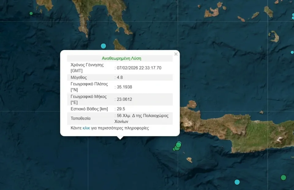 Σεισμός 4,8 Ρίχτερ δυτικά της Κρήτης
