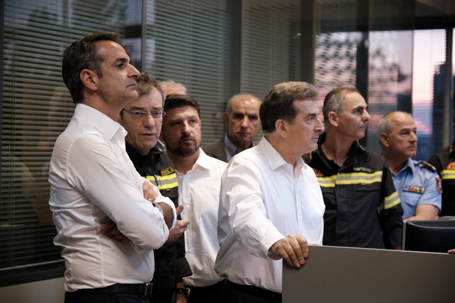 Το Ενιαίο Συντονιστικό Κέντρο Επιχειρήσεων του Πυροσβεστικού Σώματος επισκέφθηκε ο πρωθυπουργός Κυριάκος Μητσοτάκης, λίγο πριν από τις 21:00.