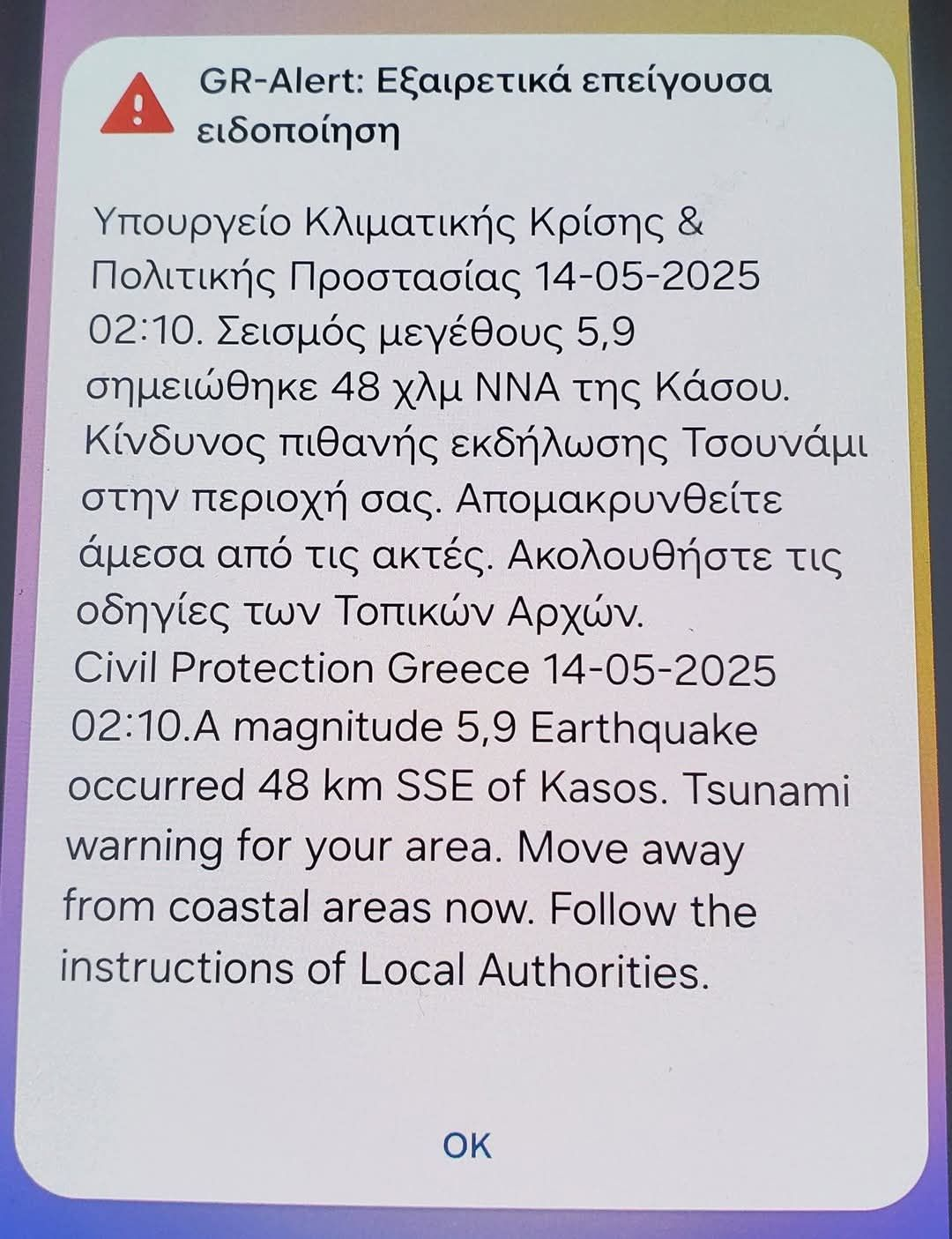 Σεισμός 6 ρίχτερ νότια της Κάσου – Μήνυμα από το 112