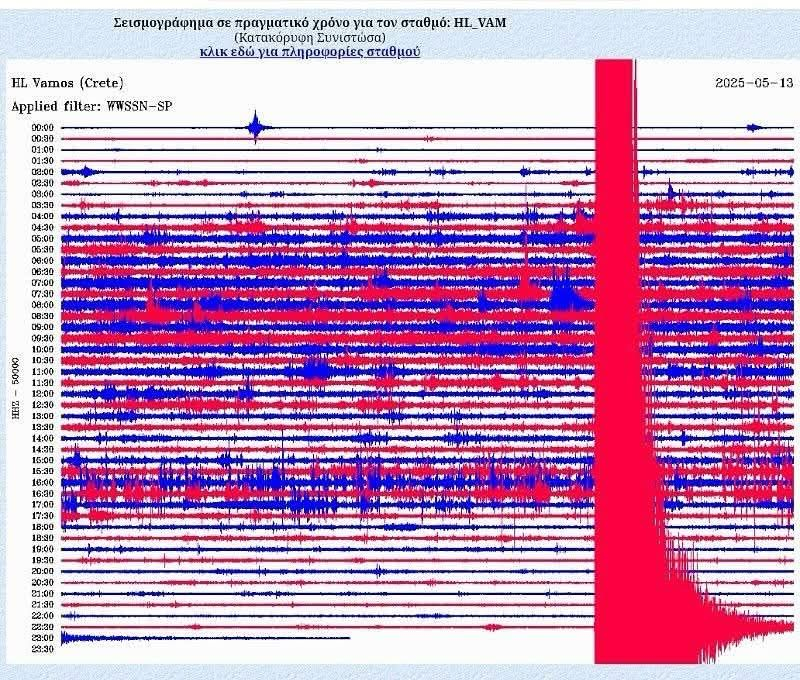 Η καταγραφή του σεισμού από το Γεωδυναμικό Ινστιτούτο του Εθνικού Αστεροσκοπείου Αθηνών