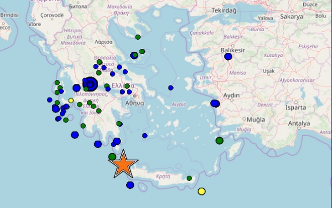 Το επίκεντρο του σεισμού μεταξύ Κυθήρων και Κρήτης Το επίκεντρο του σεισμού μεταξύ Κυθήρων και Κρήτης