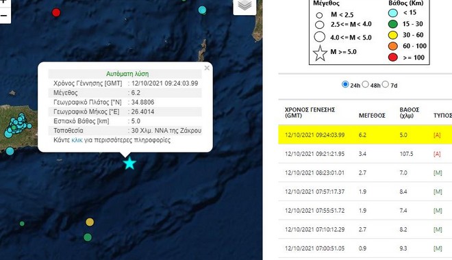Ο σεισμός σημειώθηκε στις 12:24, με επίκεντρο 23 χιλιόμετρα ανατολικά της Ζάκρου, ενώ το εστιακό βάθος ήταν στα 8 χιλιόμετρα.