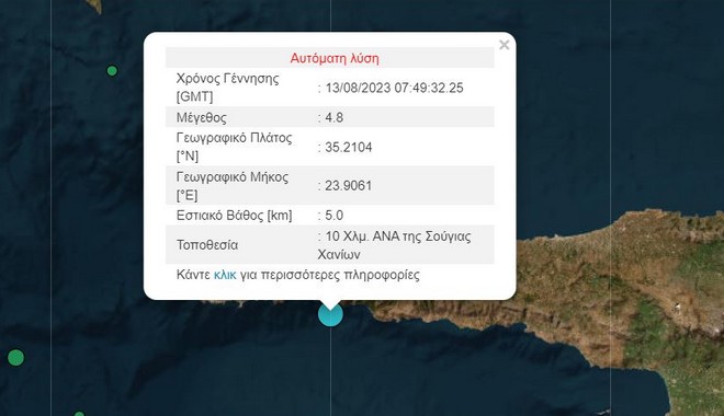 Υπενθυμίζεται πως νωρίς το πρωί της Κυριακής, σημειώθηκε ισχυρός σεισμός στην Κρήτη κοντά στα Χανιά,