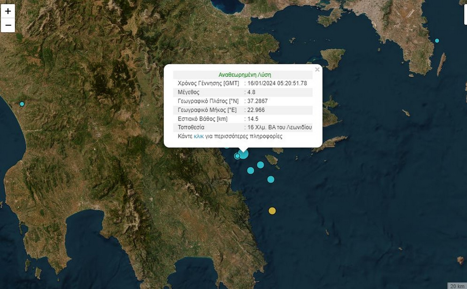 Σεισμός μεγέθους 4,8 Ρίχτερ σημειώθηκε το πρωί της Τρίτης κοντά στο Κρανίδι Αργολίδας, ο οποίος μάλιστα ταρακούνησε και την Αττική.