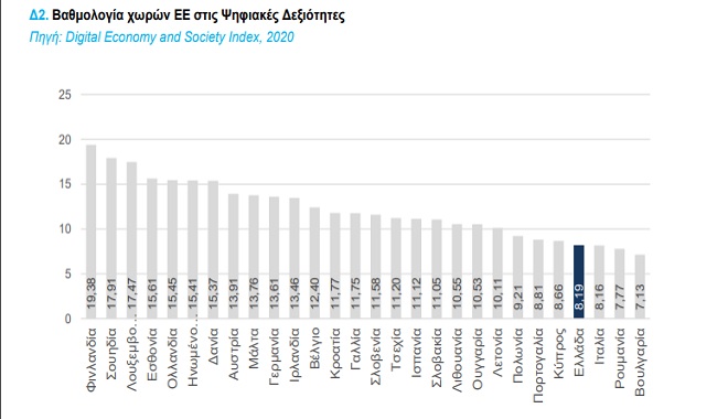 «Το γεγονός αυτό αναδεικνύει τη γενικότερη ψηφιακή υστέρηση των επιχειρήσεων και των εργαζομένων, αλλά και το περιορισμένο τεχνολογικό δυναμικό», αναφέρει ο ΣΕΒ. Επισημαίνει εξάλλου την ανάγκη για συνολική στρατηγική ανάπτυξης ψηφιακών δεξιοτήτων, με επενδύσεις, επανακατάρτιση εργαζομένων, ανάληψη του ρόλου φορέα επανακατάρτισης και πιστοποίησης από τις ίδιες τις μεγάλες επιχειρήσεις, ενίσχυση της καινοτομίας στην εκπαίδευση και διάχυση στις επιχειρήσεις των δυνατοτήτων της τεχνολογίας με κλαδική και περιφερειακή εξειδίκευση.