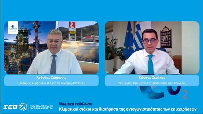 Με κεντρικό μήνυμα την αντιμετώπιση της κλιματικής αλλαγής με όρους προάσπισης της ανταγωνιστικότητας των επιχειρήσεων πραγματοποιήθηκε σήμερα (Τετάρτη 9 Μαρτίου 2022) η ψηφιακή εκδήλωση του Συμβουλίου του ΣΕΒ για τη Βιώσιμη Ανάπτυξη, με τίτλο: «Κλιματικοί στόχοι και διατήρηση της ανταγωνιστικότητας των επιχειρήσεων».