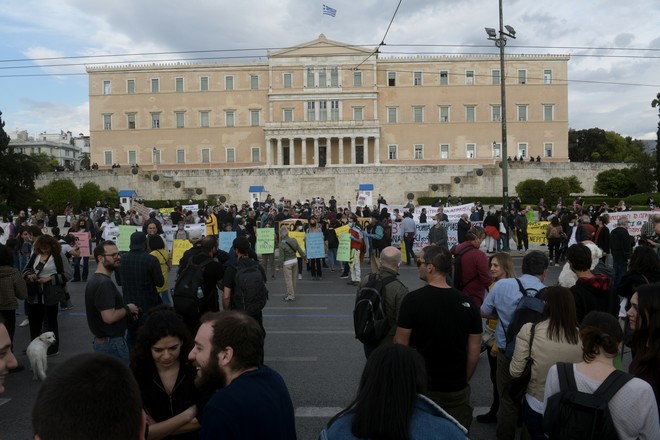Συγκέντρωση διαμαρτυρίας έξω από την Βουλή πραγματοποιούν αυτή την ώρα εκατοντάδες διαδηλωτές ενάντια στο αντι-περιβαλλοντικο νομοσχέδιο, έπειτα από κάλεσμα που απηύθυναν περιβαλλοντικές οργανώσεις, κόμματα της αριστεράς, αντιεξουσιαστικές συλλογικότητες και φορείς με κεντρικό σύνθημα “Αλλάξτε το σύστημα και όχι το κλίμα”.