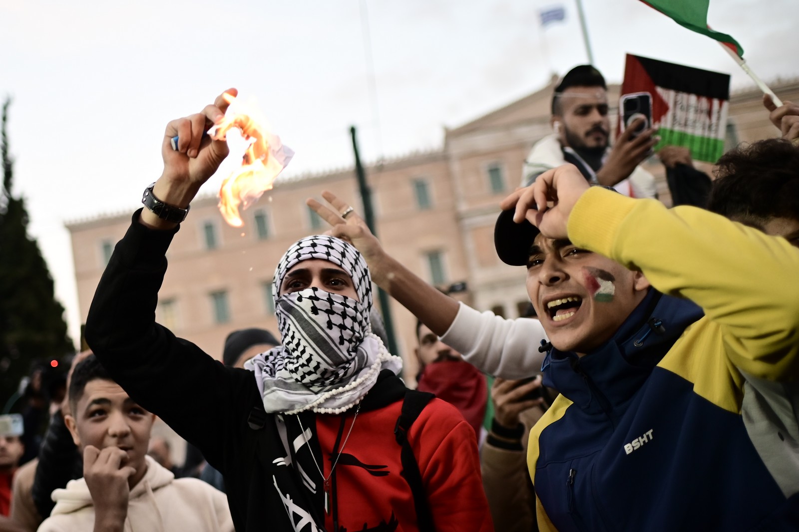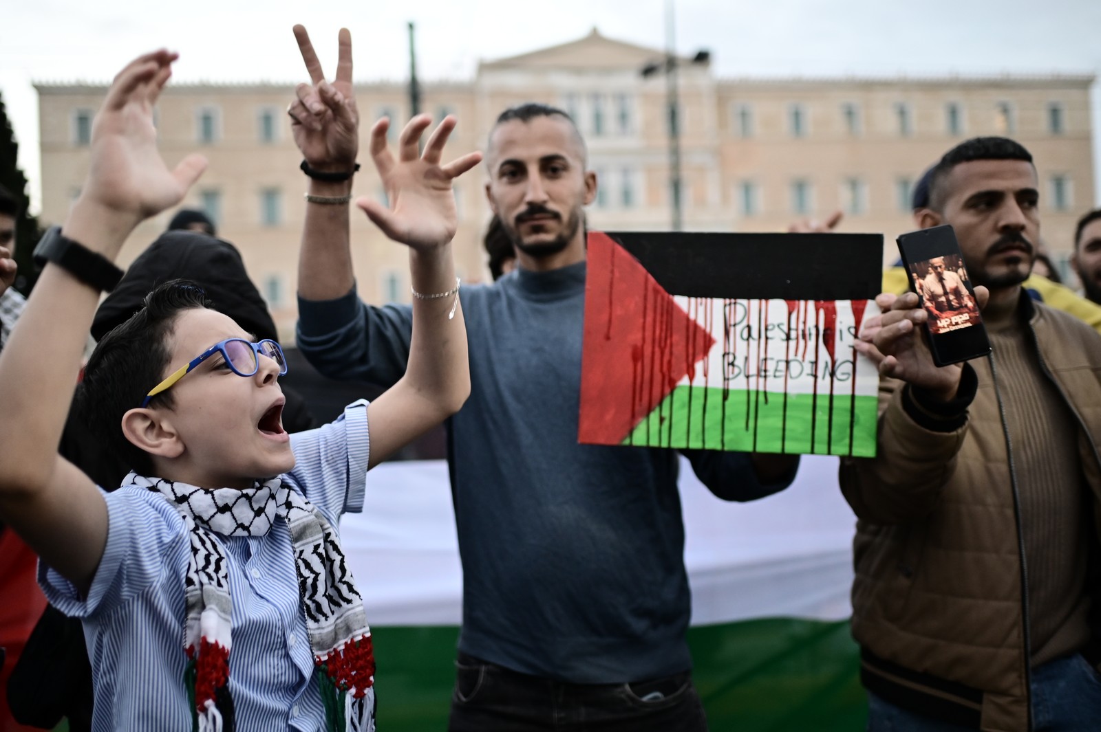 Πλήθος κόσμου στη συγκέντρωση διαμαρτυρίας υπέρ των Παλαιστίνιων στο Σύνταγμα