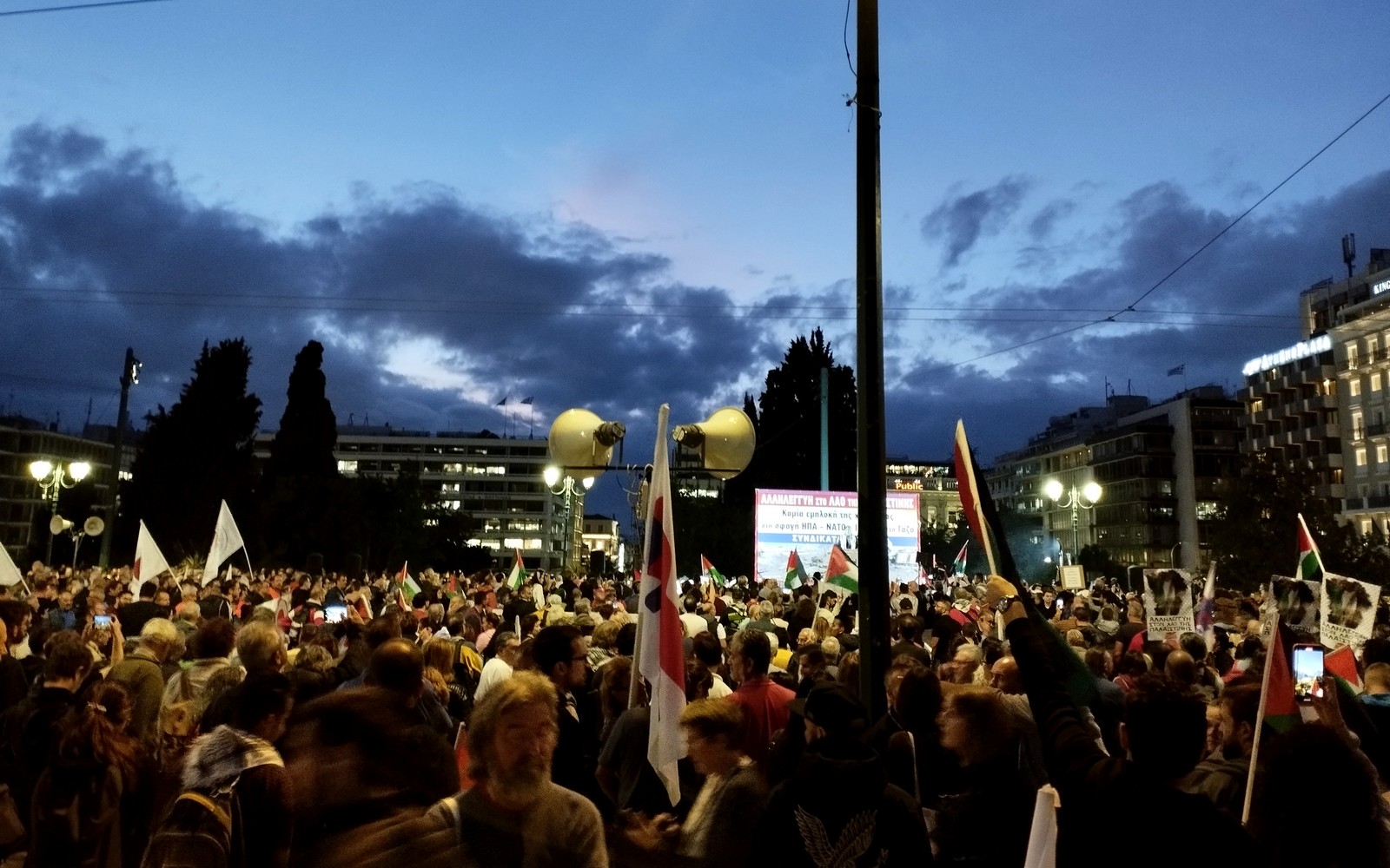 Χιλιάδες έδωσαν το παρών στις συγκεντρώσεις υπέρ του Παλαιστινιακού λαού στο Σύνταγμα από το ΚΚΕ και διάφορες συλλογικότητες.