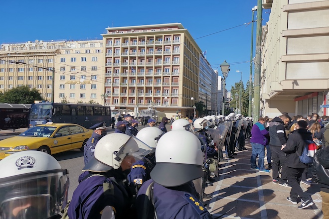 Νωριτερα, ο επικεφαλής των αστυνομικών δυνάμεων μετέφερε στους φοιτητές πως δεν μπορεί να επιτραπεί συγκέντρωση, λόγω των υγειονομικών συνθηκών, με τους συγκεντρωμένους να απαντούν πως έχουν στείλει μήνυμα με τον κωδικό 6.