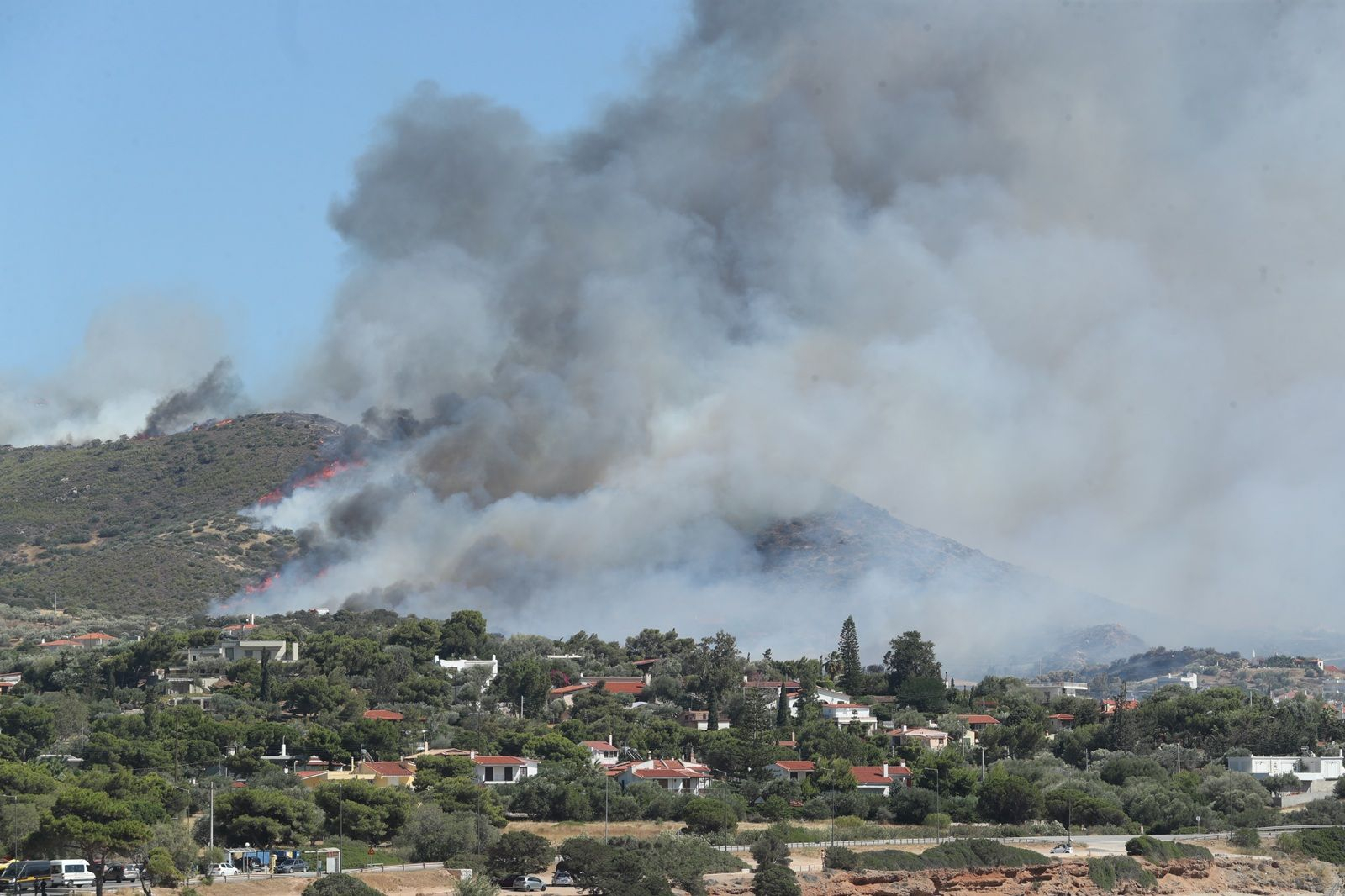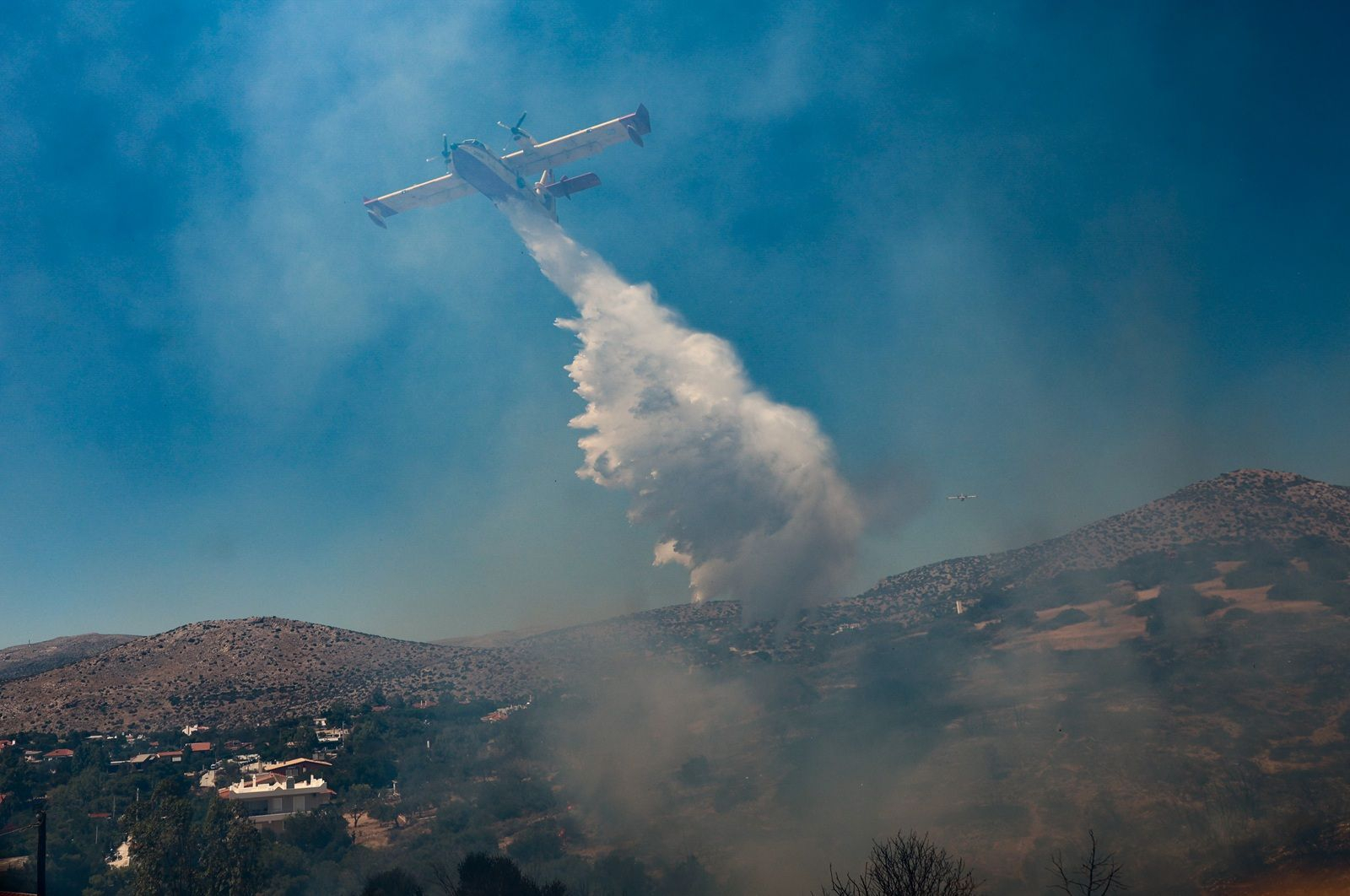 Πυρκαγιά στην Παλαιά Φώκαια Αττικής, Πέμπτη 26 Ιουνίου 2025. Για την κατάσβεση της πυρκαγιάς επιχείρησαν 90 πυροσβέστες, 28 οχήματα, 2 ομάδες πεζοπόρου της 1ης ΕΜΟΔΕ, 8 αεροσκάφη και 5 ελικόπτερα. Παράλληλα υπάρχει βοήθεια από υδροφόρες ΟΤΑ. () ΣΩΤΗΡΗΣ ΔΗΜΗΤΡΟΠΟΥΛΟΣ/EUROKINISSI