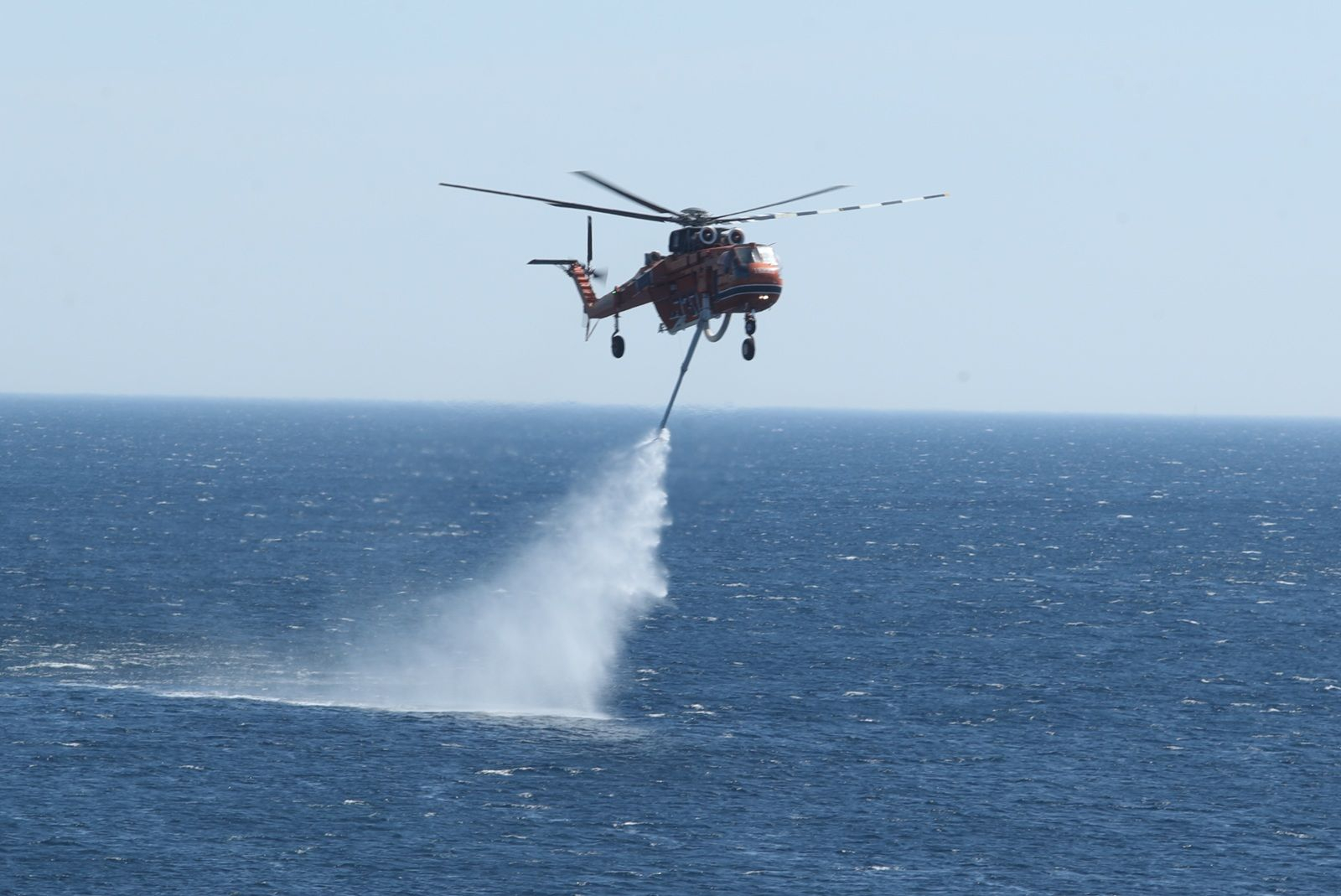 Ελικόπτερο της πυροσβεστικής επιχειρεί στην κατάσβεση της πυρκαγιάς στην Παλαιά Φώκαια Αττικής, Πέμπτη 26 Ιουνίου 2025. Μάχη με τις φλόγες συνεχίζουν να δίνουν οι πυροσβεστικές δυνάμεις στην πυρκαγιά που ξέσπασε λίγο μετά τις 12:30 σε χαμηλή βλάστηση ανάμεσα σε Θυμάρι και Παλαιά Φώκαια Αττικής. Όπως έγινε γνωστό από την Πυροσβεστική η φωτιά εκδηλώθηκε ανάμεσα σε κατοικίες με αποτέλεσμα να υπάρχουν αναφορές για καμένα σπίτια. Για τον λόγο αυτό τρία μηνύματα μέσω του 112 εστάλησαν σε κατοίκους προκειμένου να απομακρυνθούν από τις περιοχές Θυμάρι, Τουρκολίμανο, Καταφύγι και Χάρακα. ΑΠΕ-ΜΠΕ/ΑΠΕ-ΜΠΕ/ΓΙΩΡΓΟΣ ΒΙΤΣΑΡΑΣ