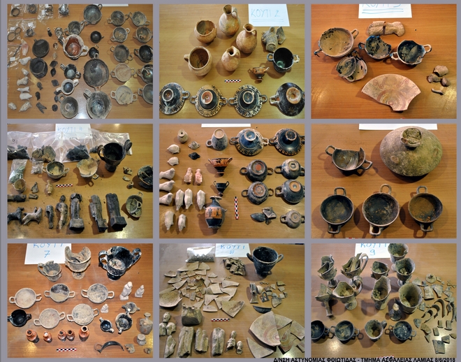 Ακολούθως μεταφέρθηκαν στο Τμήμα Ασφαλείας Λαμίας και καταμετρήθηκαν, ενώ σύμφωνα με την αρχική εκτίμηση αρχαιολόγων της Εφορίας Αρχαιοτήτων Φθιώτιδας – Ευρυτανίας, χρονολογούνται κυρίως στον 5ο π.Χ. αιώνα.