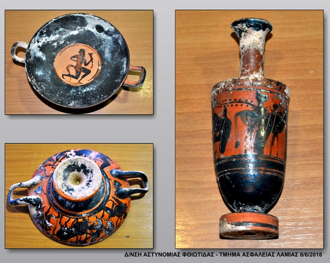 Ειδικότερα, προχθές το απόγευμα, το Τμήμα Ασφαλείας Λαμίας ενημερώθηκε από την Πυροσβεστική Υπηρεσία Λαμίας, ότι κατά τη διάρκεια κατάσβεσης πυρκαγιάς που εκδηλώθηκε νωρίτερα σε αγροτική – δασική έκταση, αποτελούμενη από ελαιόδενδρα και πουρνάρια, στην περιοχή Μεγαπλάτανος Λιβανατών Λοκρίδας Φθιώτιδας, εντοπίστηκε από άνδρες του Πυροσβεστικού Σώματος, μεγάλος αριθμός αρχαίων αντικειμένων.