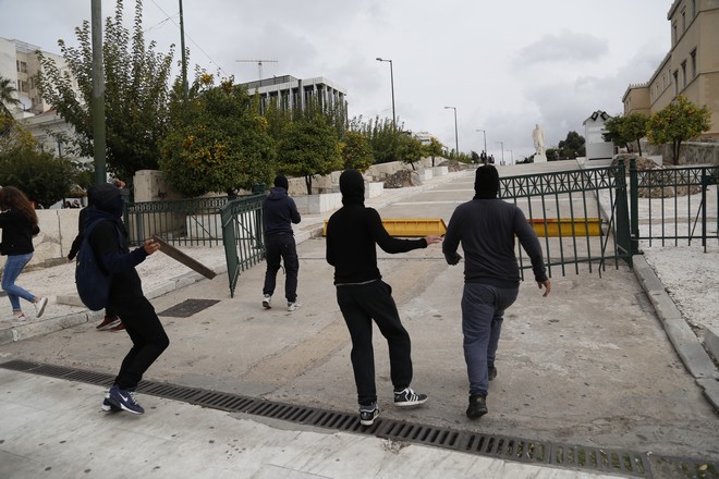 Όλα ξεκίνησαν από τις δύο το μεσημέρι καθώς περνούσε η πορεία των μαθητών μπροστά από την Βουλή. Περίπου 30-40 κουκουλοφόροι που παρείσφρυσαν στην ουρά της πορείας, επιτέθηκαν με 4 βόμβες μολότοφ εκ των οποίων εξερράγησαν οι τρεις, πέτρες και νεράτζια, εναντίον των αστυνομικών των ΜΑΤ που βρίσκονταν πίσω στο πλαϊνό προαύλιο της Βουλής.