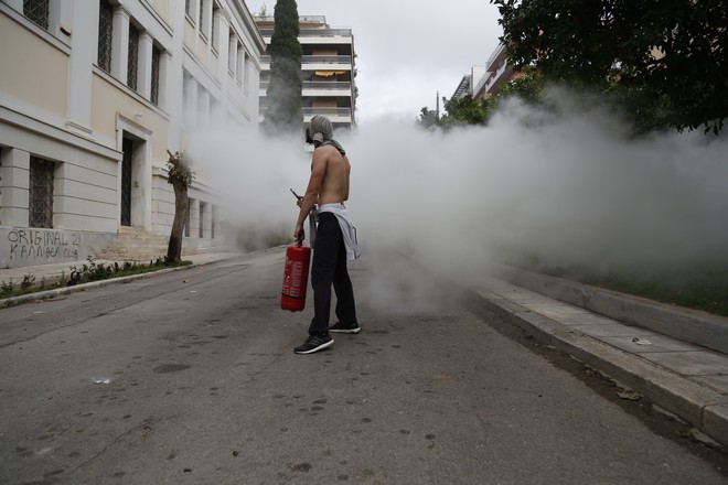 Από πλευράς Αστυνομίας έχει γίνει μόλις ελάχιστη χρήση δακρυγόνων ανά περιπτώσεις, παρότι η κατάσταση γύρω από το Πολυτεχνείο ήταν παντελώς ανεξέλεγκτη, με τους αντιεξουσιαστές να πετούν βόμβες μολότοφ, πέτρες και διάφορα άλλα αντικείμενα σε διμοιρίες των ΜΑΤ.