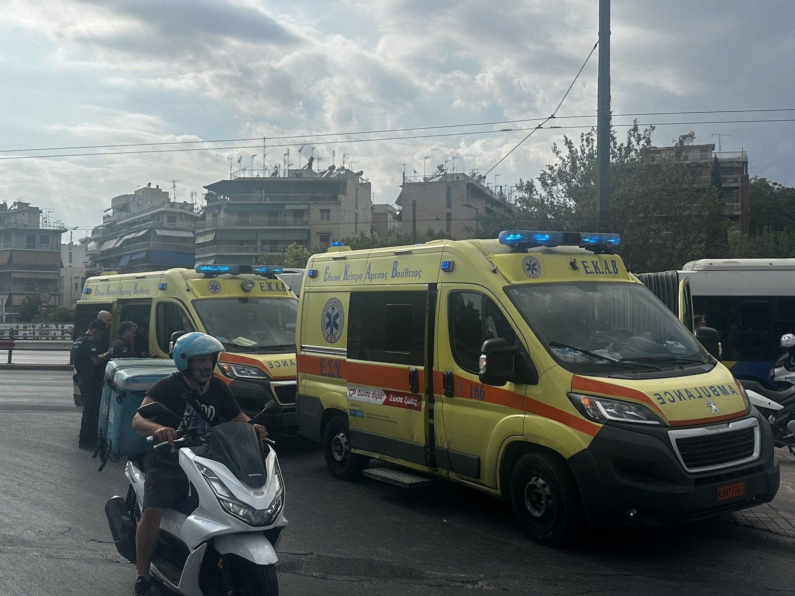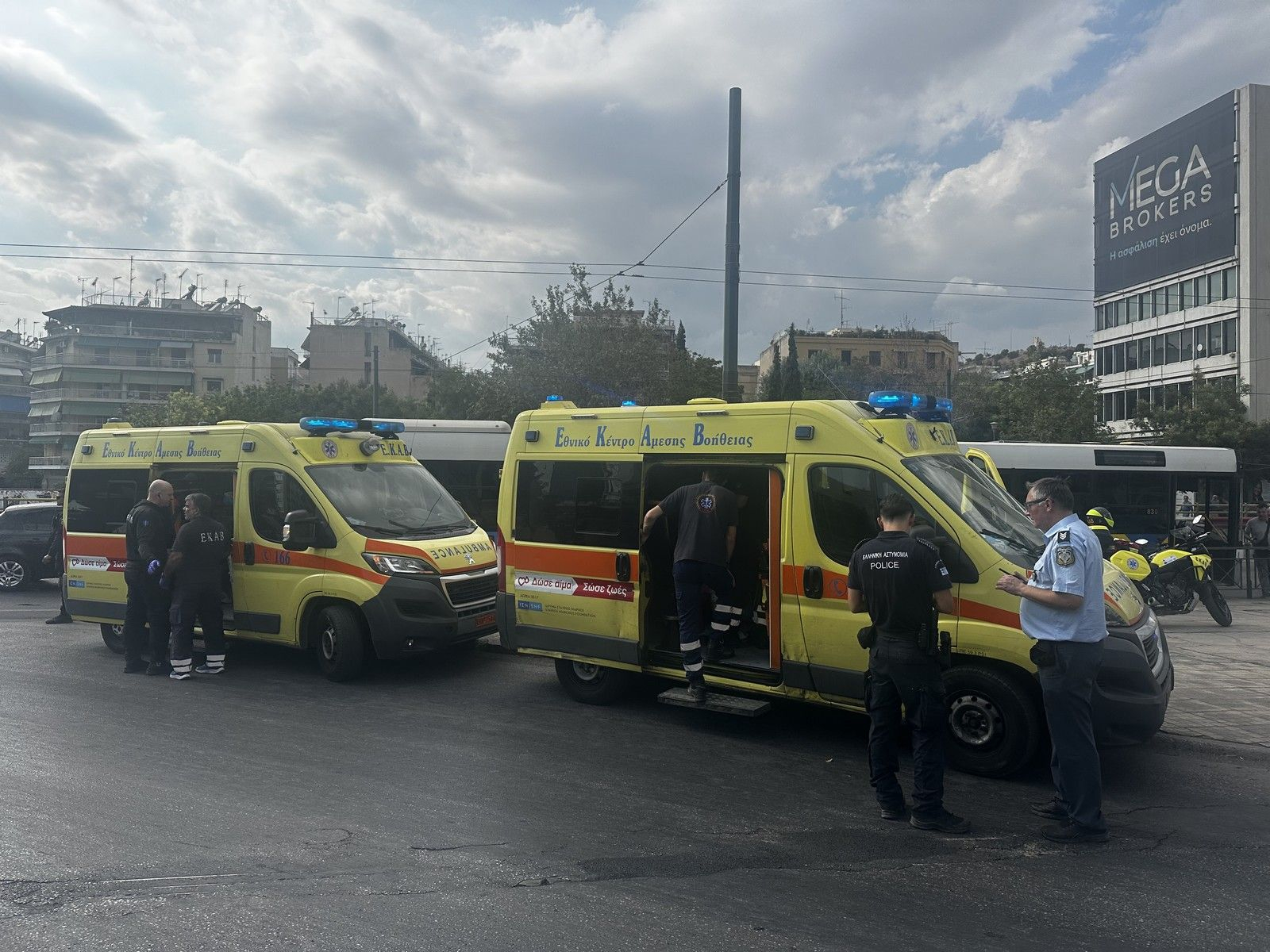 Αστυνομικές δυνάμεις έσπευσαν στο σημείο και συντόνισαν τη διακομιδή των τραυματιών σε νοσοκομεία. Οι διασώστες του ΕΚΑΒ παρείχαν πρώτες βοήθειες σε 10 επιβαίνοντες του λεωφορείου, ενώ προληπτικά διακομίσθηκαν 5 άτομα σε καλή κατάσταση στο Νοσοκομείο «Ευαγγελισμός» και το ανήλικο παιδί στο Παίδων «Αγία Σοφία». Δεν υπήρξε σοβαρός τραυματισμός. Διευκρινίζεται ότι στο τροχαίο το ΕΚΑΒ ανταποκρίθηκε σε 6 λεπτά με 4 ασθενοφόρα και 2 μοτοσυκλέτες Άμεσης Επέμβασης.