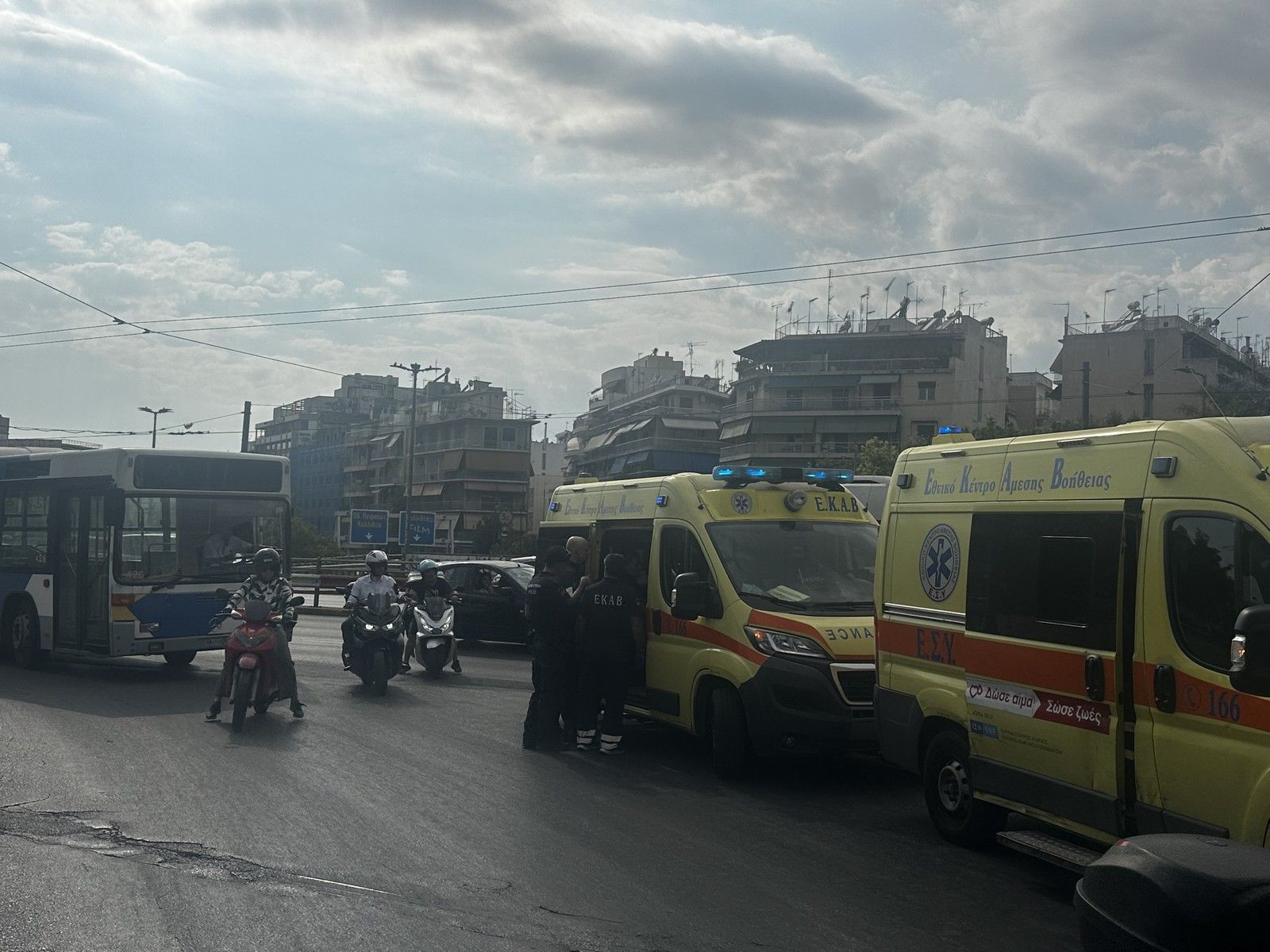 Σοβαρό τροχαίο με λεωφορείο και ΙΧ όχημα στη συμβολή των λεωφόρων Συγγρού και Καλλιρρόης. Αστυνομικές δυνάμεις έσπευσαν στο σημείο και συντόνισαν τη διακομιδή των τραυματιών σε νοσοκομεία. NEWS 24/7 @Κατερίνα Φασσέα