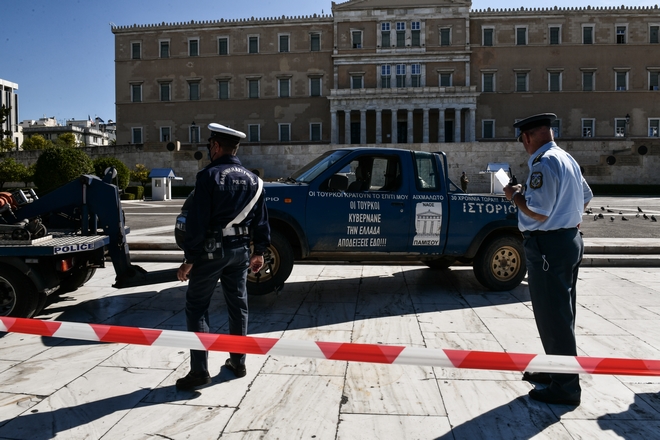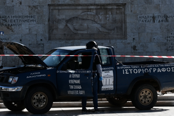 Πρωτοφανές περιστατικό έξω από τη Βουλή. Οδηγός ανέβηκε με το φορτηγάκι του στο μνημείο του Άγνωστου Στρατιώτη απειλώντας πως θα βάλει φωτιά. Συνελήφθη και θα υποβληθεί σε ψυχιατρική εξέταση.