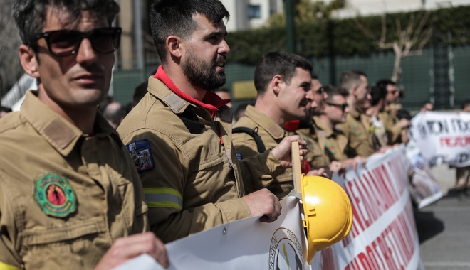 Συγκέντρωση διαμαρτυρίας πραγματοποίησαν, το πρωί της Τρίτης (7/3), εποχικοί πυροσβέστες του Σωματείου Συμβασιούχων Πυροσβεστών Ελλάδος στην πλατεία Συντάγματος.