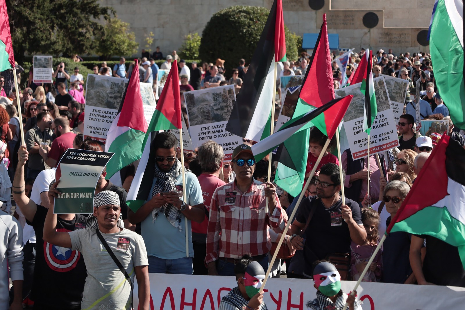 Χιλιάδες συγκεντρώθηκαν στην πλατεία Συντάγματος σε ένδειξη αλληλεγγύης και συμπαράστασης στον Παλαιστινιακό λαό. Δείτε φωτογραφίες.