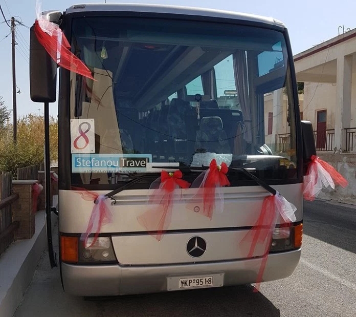 Ούτε Mercedes, ούτε Porsche, αλλά με Λεωφορείο τουριστικού Πρακτορείου, επέλεξε ο γαμπρός για να μεταβεί στην εκκλησία και να παντρευτεί την αγαπημένο του. Και κάπως έτσι, ο Φραγκίσκος και η Κατερίνα, έκαναν τη διαφορά.