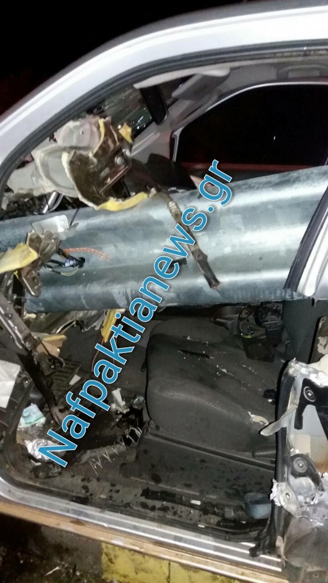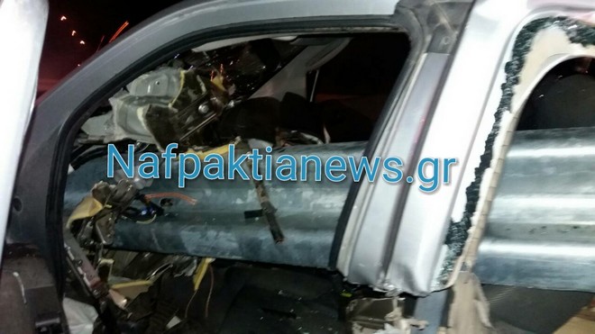 Σοκαριστικές εικόνες από τροχαίο στην Ναύπακτο: Η μπάρα διαπέρασε το αγροτικό